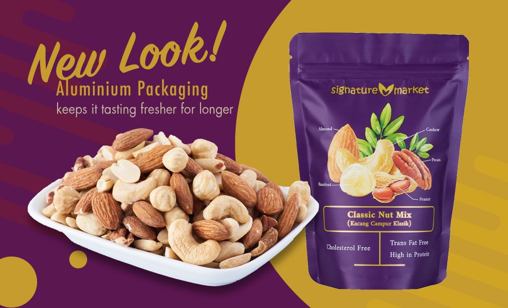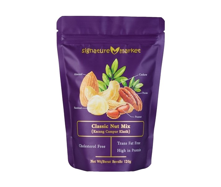 – Signature Market’s Classic Nut Mix is a healthy, guilt-free snack made with almonds, cashews, pecans, hazelnuts, and lightly salted peanuts.